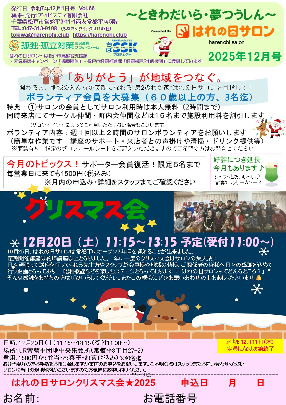 ときわだいら夢つうしんvol.66~12月号~が発行されました!