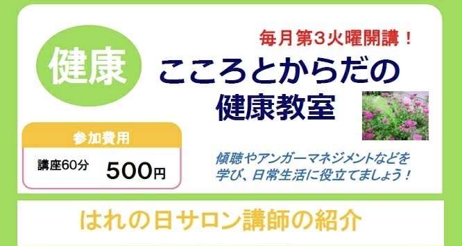 こころとからだの健康教室、16日火曜開催します♪